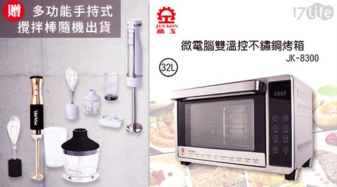 晶工牌-32L微電腦雙溫控不鏽鋼旋風烤箱JK-8300+送【POLAR普樂】多功能手持式攪拌棒PL-1250/【POLAR普樂】多功能手持式攪拌棒PL-2001(隨機出貨) 還挺心動的!但價格很硬~就回家找找看有沒有比較便宜